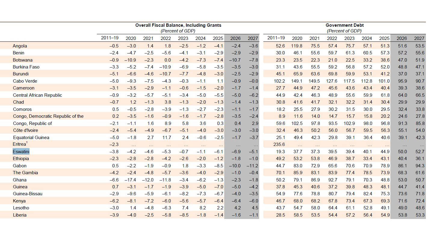 MBABANE – The International Monetary Fund (IMF) has downgraded Eswatini’s economic growth outlook, with projections for both 2026 and 2027 revised downward in its latest April 2026 Regional Economic Outlook.